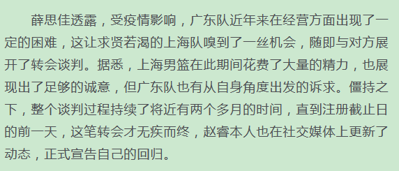 然而,还有另外一种说法是赵睿家里有事,具体是什么事宜并没有对外公布。