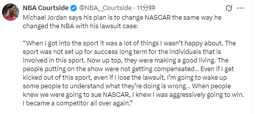 打官司掀翻规则!乔丹硬刚NASCAR:就算被逐出我也要唤醒一些人