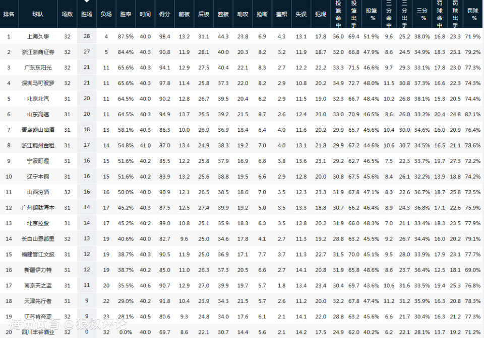 上海男篮毫无疑问是目前第一争冠热门,多项数据位居联盟第一。