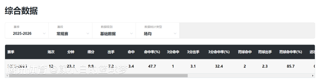 对阵南苏丹10中6+三分5中3,拿到17分6助攻5篮板;