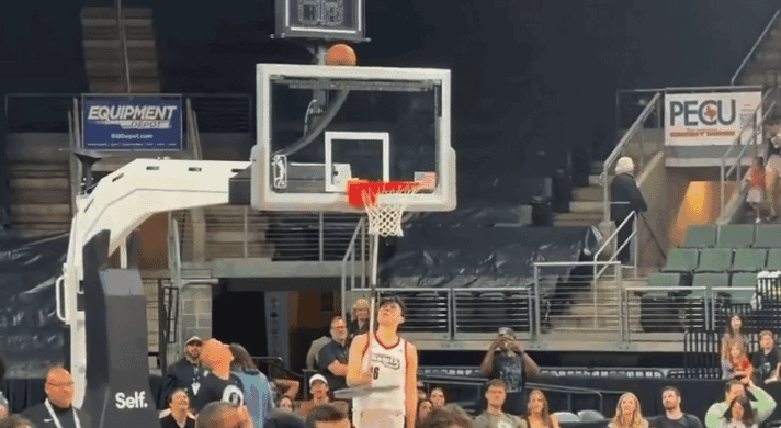视频中,杨瀚森让工作人员将拖把借给他,他用拖把将掉在篮板计时器上的篮球给捅了下来,随后杨瀚森单手持球,将比赛用球拿走,而在见到本场比赛的裁判和奥斯汀马刺的工作人员后,杨瀚森也礼貌和他们握手。