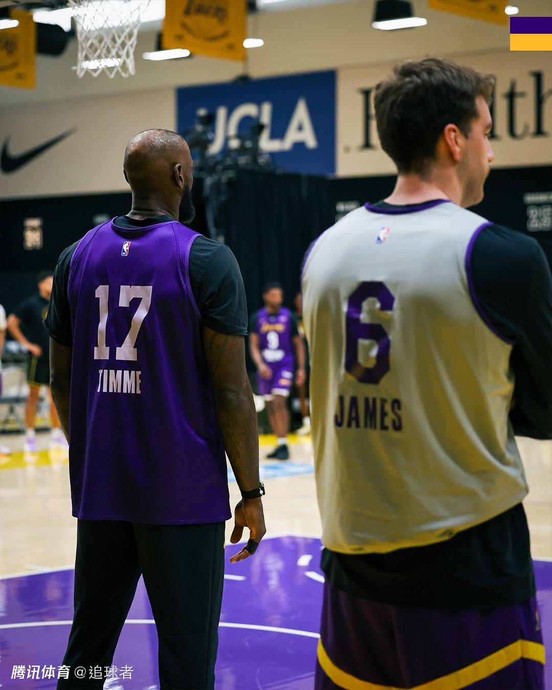 在今天的训练中,詹姆斯与蒂米互换球衣,老詹改穿17号,蒂米则是改穿6号;东契奇与联盟最准射手肯纳德互换球衣,东契奇换上11号球衣时满脸笑容;里夫斯与艾顿互换球衣,拉拉维亚与布朗尼互换球衣。