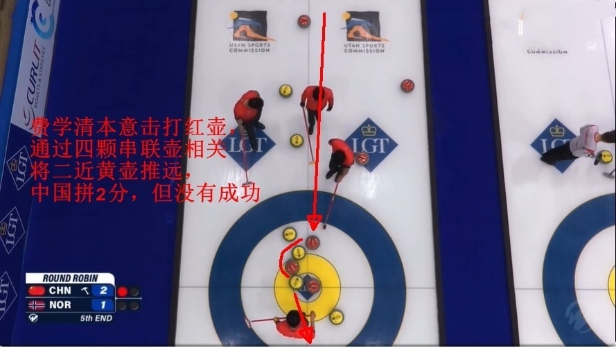 费学清尽管还是通过平行壶牵制,但距离太近形成相关,被哈尔斯塔德成功双飞打留,挪威拿到2分。