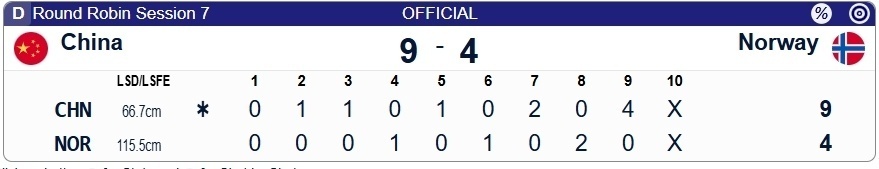 面对9-4的差距,挪威自认无法在第十局拿5分,选择提前握手认输。