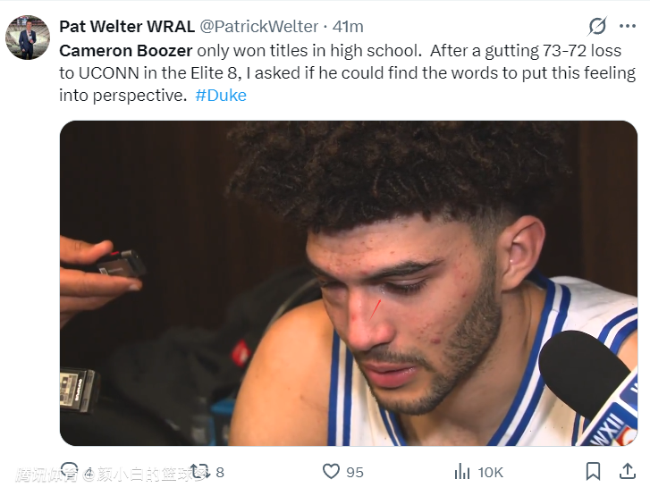 状元热门被绝杀眼含热泪!采访不断重复‘太痛苦’ 轰27+8效率低下