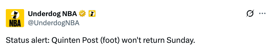 2026-03-30 12:10北京时间3月30日,NBA常规赛,勇士对阵掘金,勇士官方宣布,波斯特因为脚部受伤,本场比赛不会回归。