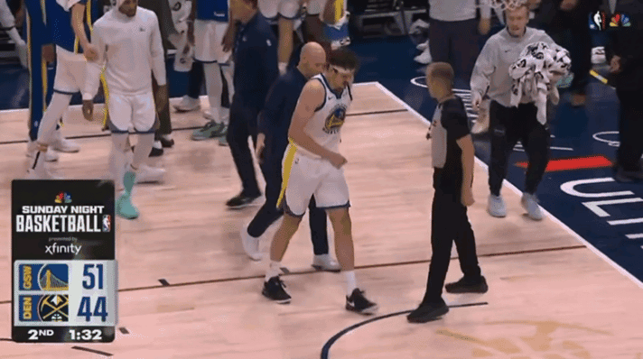 在第二节比赛还剩下1分多钟的时候,波斯特持球突破,在一次上篮过程中,波斯特疑似脚部受伤,随后勇士喊暂停,波斯特一瘸一拐地离场,返回更衣室。