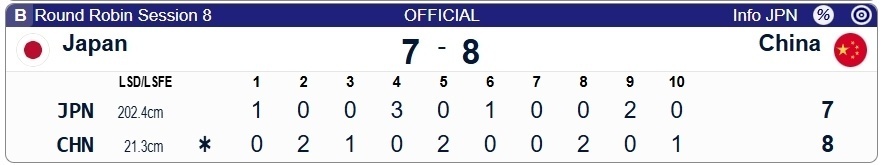 不过没想到居然是费学清第二投角度不够,导致日本红壶只被擦到,没能飞出大本营,日本偷到1分。