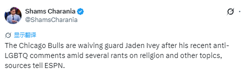 2026-03-31 05:40北京时间3月31日,据名记Shams报道,ESPN消息人士透露,公牛队将裁掉后卫杰登-艾维,此前他多次发表涉及宗教及其他话题的激烈言论,其中还包含反对LGBTQ群体的不当言论。