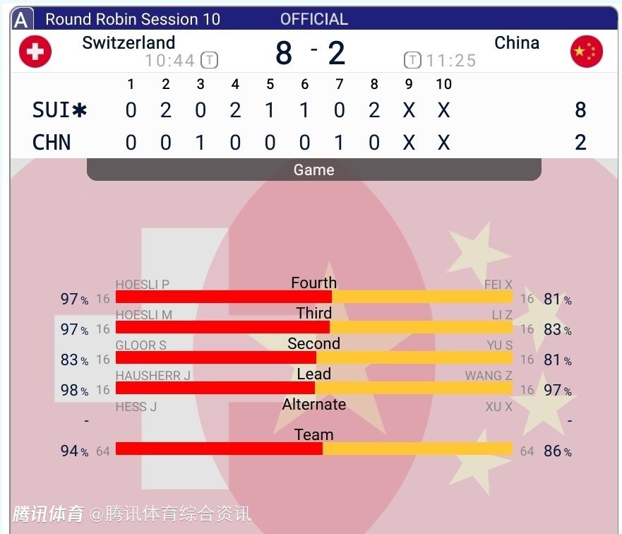 2026-03-31 07:10北京时间3月31日,在2026年男子冰壶世锦赛循环赛中,中国队以2-8不敌瑞士队,目前战绩为3胜3负排名第6位。