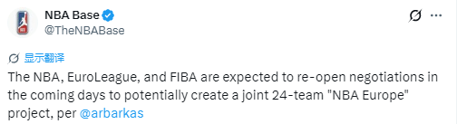 重磅!NBA与欧篮联国际篮联拟重启谈判 计划共建24队欧洲联赛