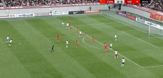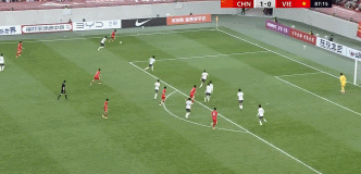 第39分钟,杜月徵前场扛开后卫超远射门打出落叶球,中国1-0越南。