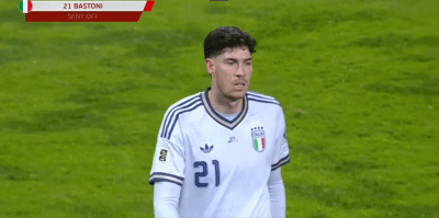 然而第42分钟,形势风云突变,中卫巴斯托尼防线最后一人铲倒梅米奇,裁判直红将其罚下,意大利不得不在剩余时间少打1人。
