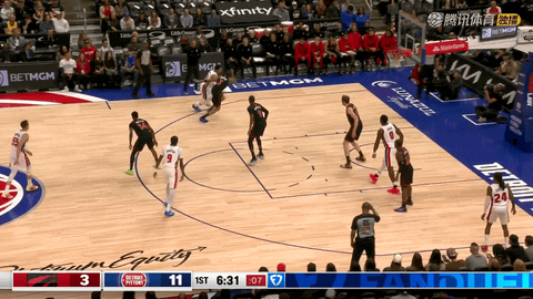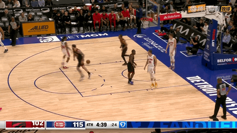 第四节还剩7分25秒到4分29秒之间,猛龙在马穆凯拉什维利和A.J. 劳森的带动下连续5次进攻得分,将比分从92比115追到104比115,一度把分差从23分缩小到11分,给活塞制造了不小的压力。