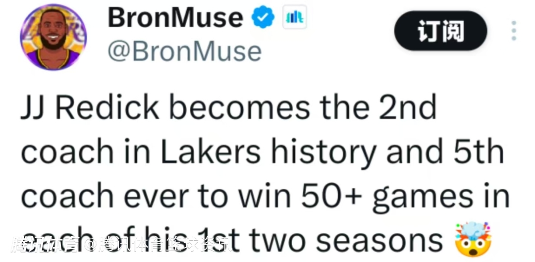 里程碑!雷迪克连续两季率湖人取得50+胜场 成队史第二人+历史第五人
