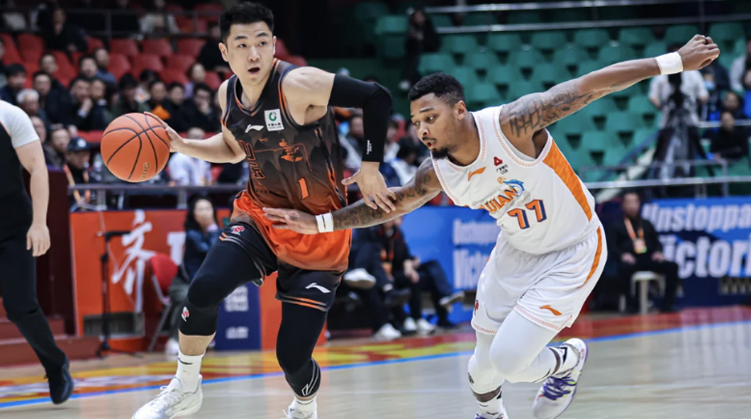 福建晋江文旅队马昆杜和山东高速队琼斯跳球后,首节还剩9分42秒时,郭凯抢下进攻篮板后带球上篮命中,为山东拿下本场首分。