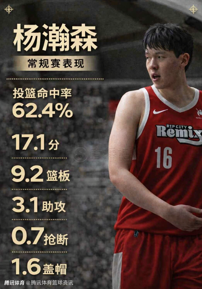 G联盟季后赛已正式开打,撕裂之城混音将在首轮对阵墨西哥城队长,首场比赛今早十点开打。本赛季,杨瀚森为混音队出战了14场常规赛,场均得到17.1分9.2篮板3.1助攻0.7抢断1.6盖帽,投篮命中率62.4%,三分球32.1%,罚球命中率75%。