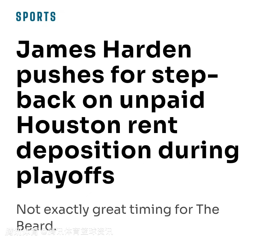 拖欠220万租金!哈登申请推迟餐厅欠租案取证 以季后赛与母亲健康为由