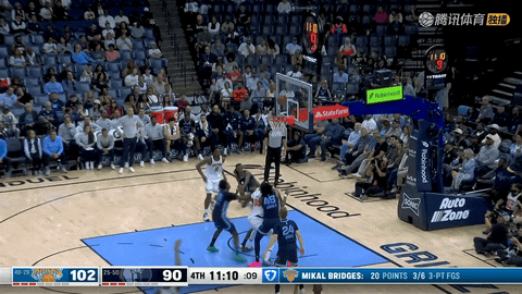 然而灰熊在还剩10分22秒到8分36秒间连得分数,将比分追至109:100。关键阶段,尼克斯从还剩5分04秒起连续多次防守成功,并在还剩3分钟时由阿奴诺比接唐斯助攻命中三分,唐斯就此达成三双,比分来到125:108。
