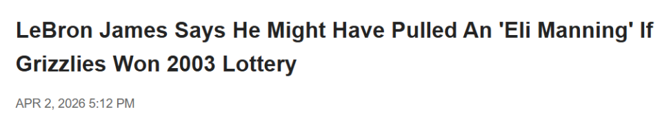 “他们唯一得到我的机会,就是2003年抽中状元签,”詹姆斯说道,“而我大概率会复刻伊莱-曼宁,直接不去报到。”