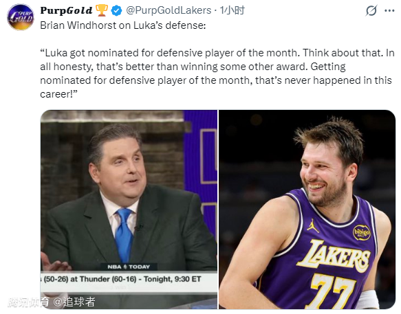 东契奇还获得西部月最佳防守球员的提名,对此名记Brian Windhorst表示:东契奇被提名为本月最佳防守球员,想想看,说实话,这比拿其他一些奖项还要厉害,获得月度最佳防守球员提名,这在他职业生涯中从未发生过!