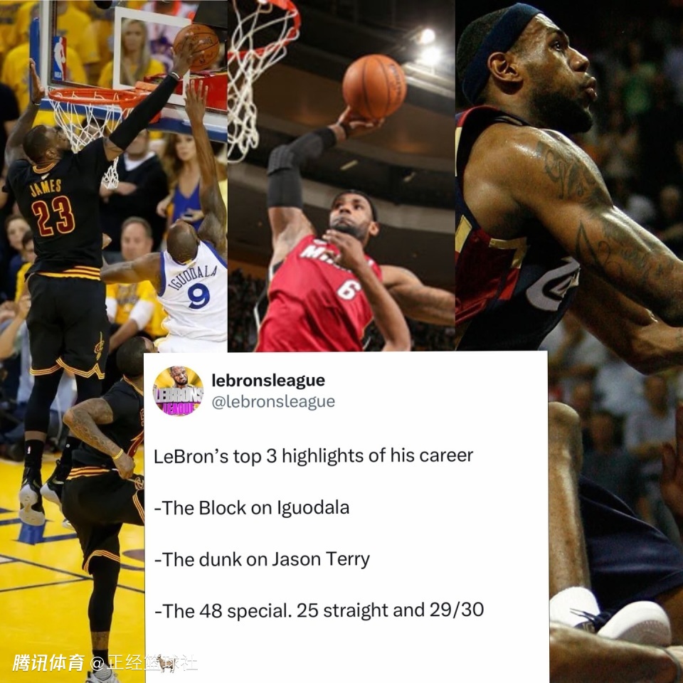 詹姆斯评生涯前三高光时刻:世纪封盖居首 扣翻特里+07年东决上榜