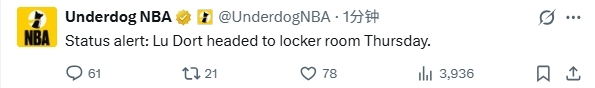 在受伤下场前,多尔特此役已出战21分钟20秒,8投5中得到14分1助攻2抢断。在多尔特受伤之前,湖人队球员东契奇也受伤返回了更衣室。