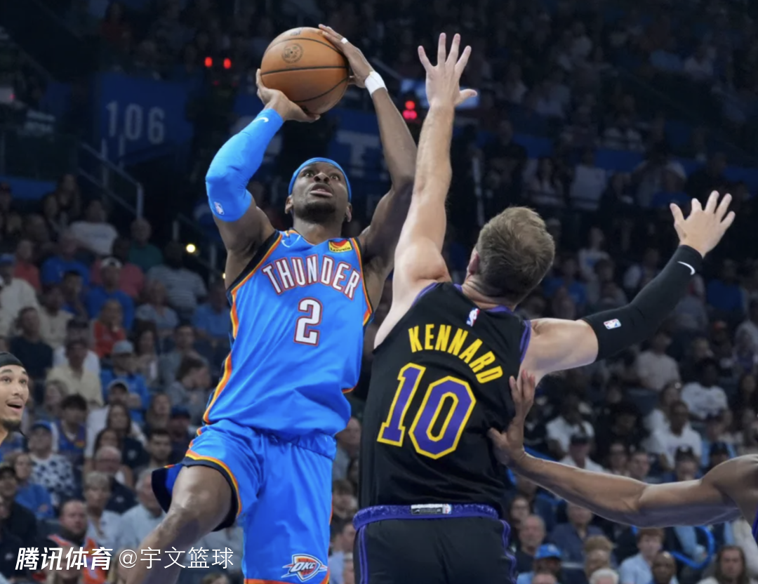 亚历山大率雷霆三杀湖人!三节28+7+7打卡 正负值+35迎43分狂胜