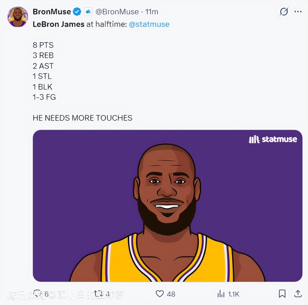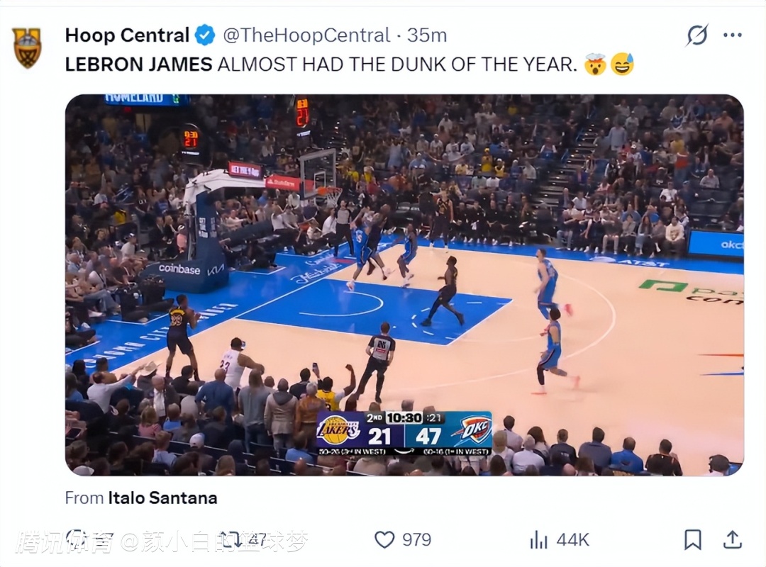 开场湖人就被雷霆打垮了,里夫斯个人4次失误让湖人开场崩盘,詹姆斯开场防守端已经非常积极只可惜全队拉胯,第二节詹姆斯险些完成隔扣2+1,只可惜被犯规没能扣进。