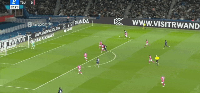 33’再度领先!K77头球摆渡,登贝莱空门得手,大巴黎2-1图卢兹