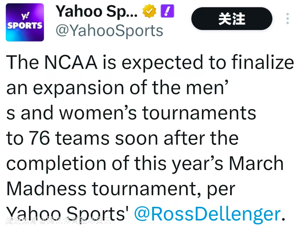 基本板上钉钉!高层确认:NCAA男女锦标赛扩至76队几成定局