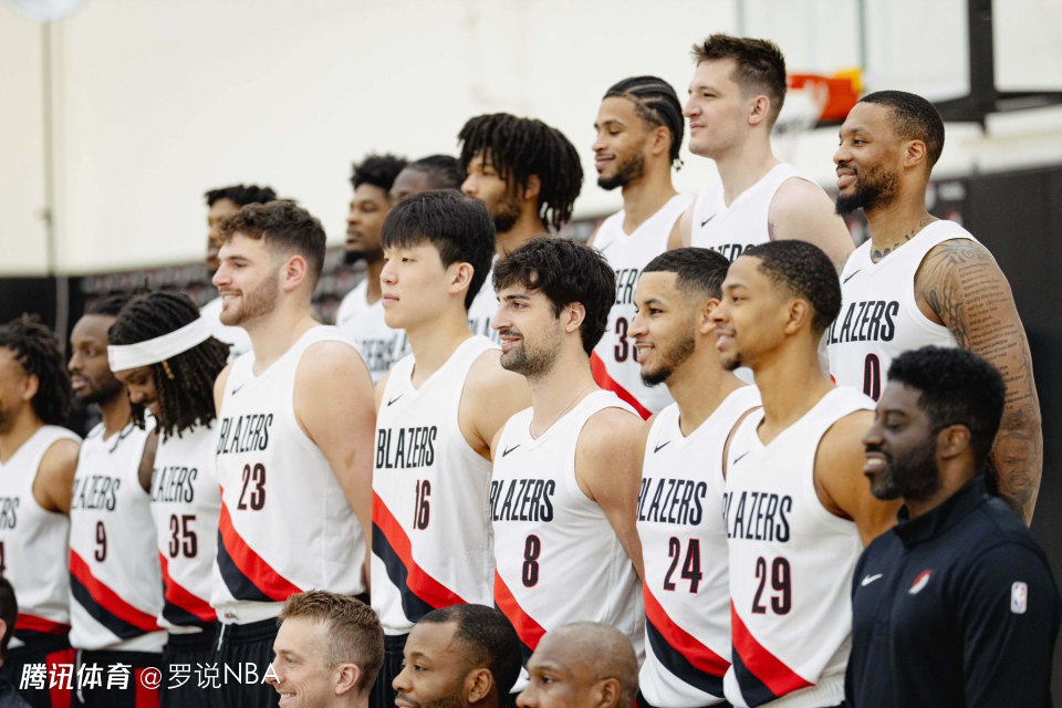 开拓者拍全家福!克林根C位杨瀚森在他身旁 昔日老大利拉德站角落