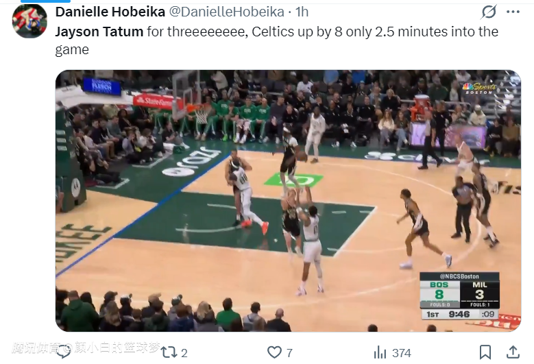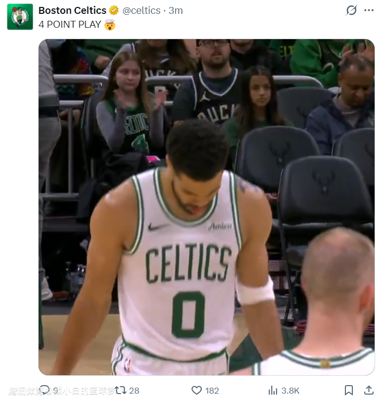 第三节塔图姆还完成了4分打,他很快也完成20+,第三节塔图姆打满12分钟,4中3+三分1中1+罚球3中2拿到9分6篮板1助攻1抢断,他已经拿到23分11篮板9助攻3抢断的准三双,他还差1个助攻就完成连场三双。