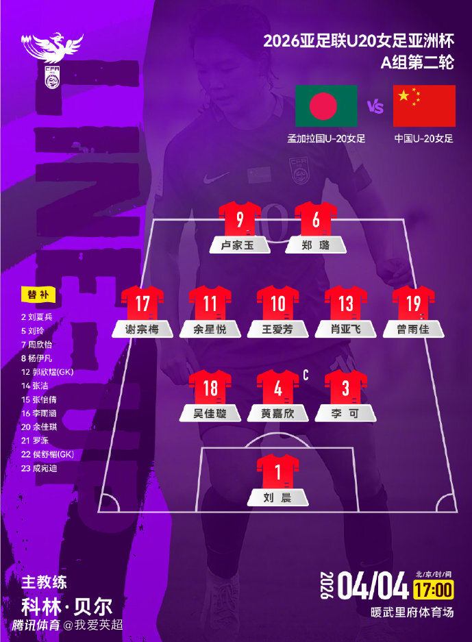 2026-04-04 16:20北京时间4月4日17点,2026年U20女足亚洲杯A组第2轮一场焦点战将打响。中国U20女足将在泰国的暖武里府体育场,迎战孟加拉国U20女足。此役中国女足如果能取胜,将可以提前1轮锁定小组出线资格。