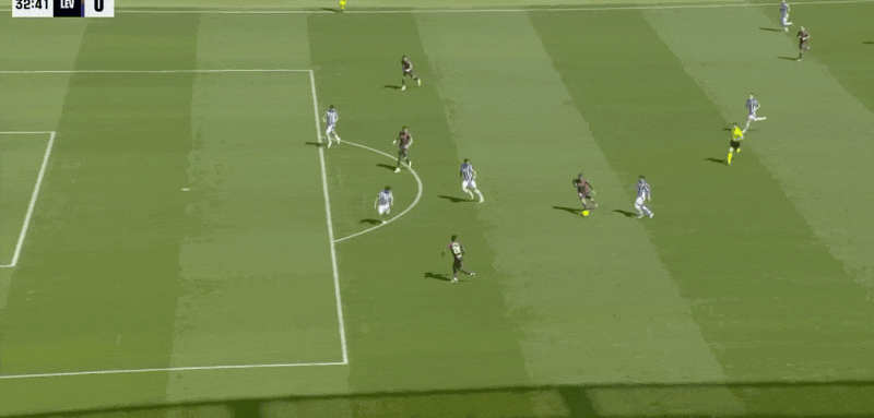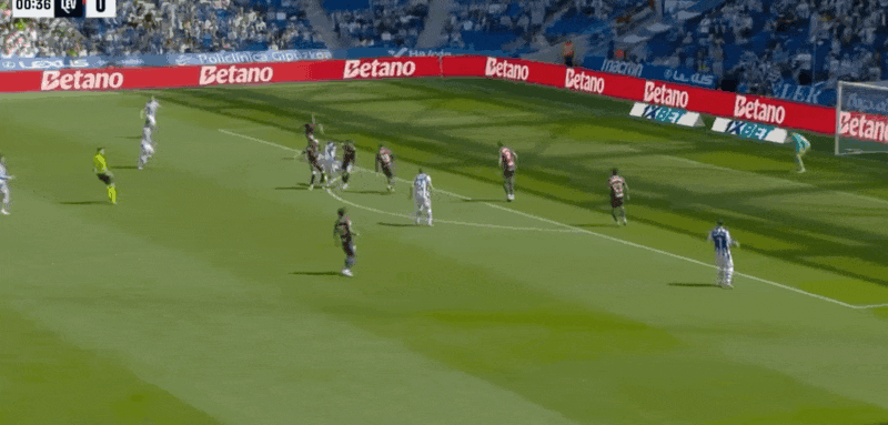 19’阿兰布鲁右路横敲,格德斯跟进抽射攻门稍稍偏出