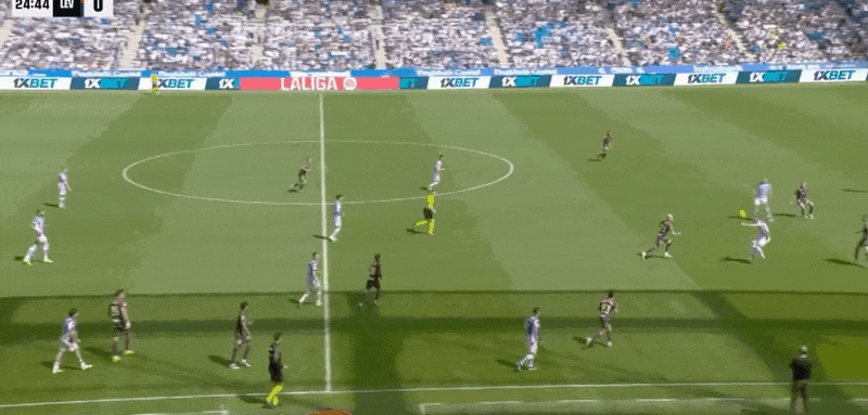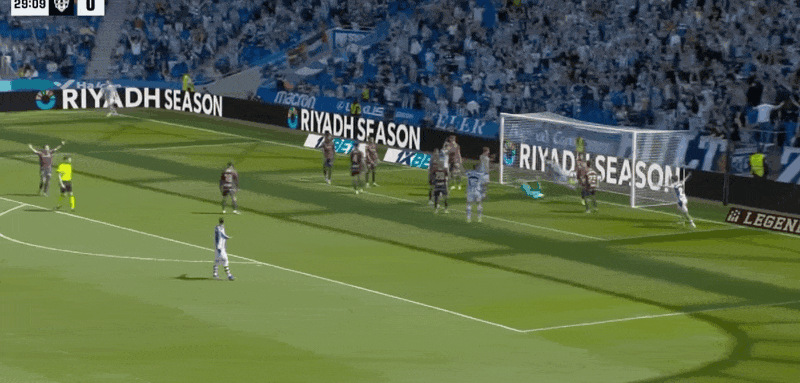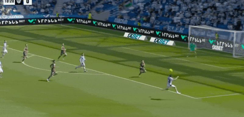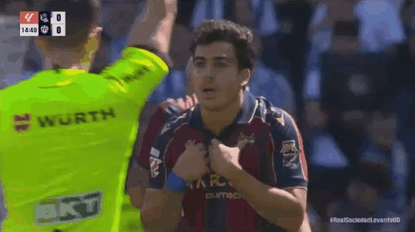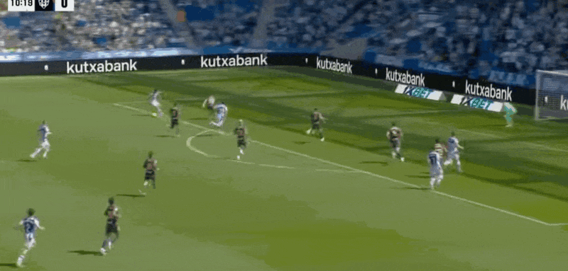 30’瑞恩出击没能碰到皮球,马丁头球破门,皇家社会1-0莱万特