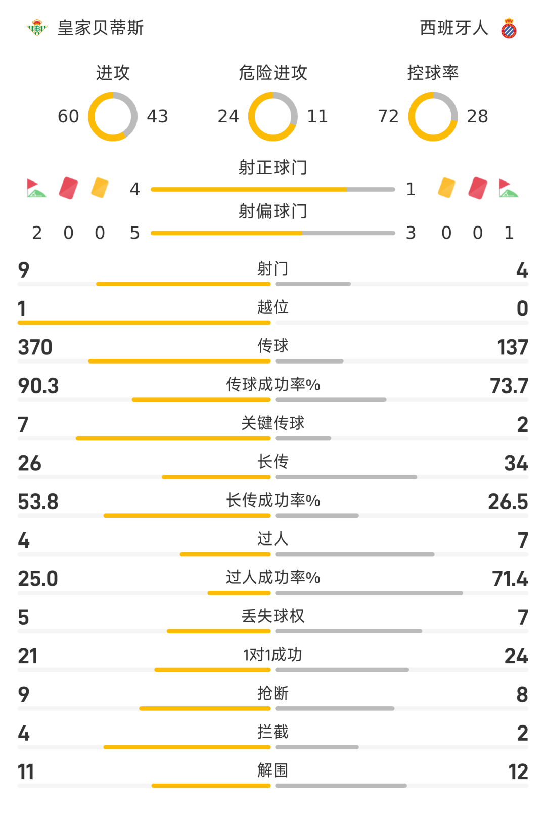 2026-04-05 01:3025/26赛季西甲联赛第30轮,皇家贝蒂斯迎战西班牙人。半场战罢,双方比分暂为皇家贝蒂斯0-0西班牙人。