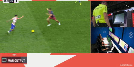 在监视器前回看了录像,并听取了视频裁判组同事的意见后,布斯克茨·费雷尔最终决定撤销红牌,改判黄牌警告。他确认道:“好的,巴萨球员控制着球,先触球,随后因正常的惯性踩到了对方。我将撤销红牌,出示黄牌。”