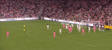第81分钟,迈阿密国际角球,前点头球一蹭,替补登场的苏亚雷斯后点包抄破门,再次帮助迈阿密国际追平比分。