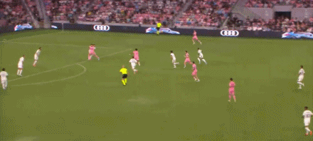第34分钟,梅西左路连续摆脱传中,但西尔维蒂射门被挡出。