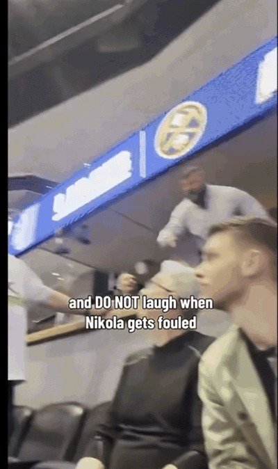 据掘金队记Rachel Strand报道,比赛中,有客队的球迷在约基奇被犯规时嘲笑并且庆祝,结果被身后的约基奇哥哥斯特拉辛贾教训得乖乖坐下。