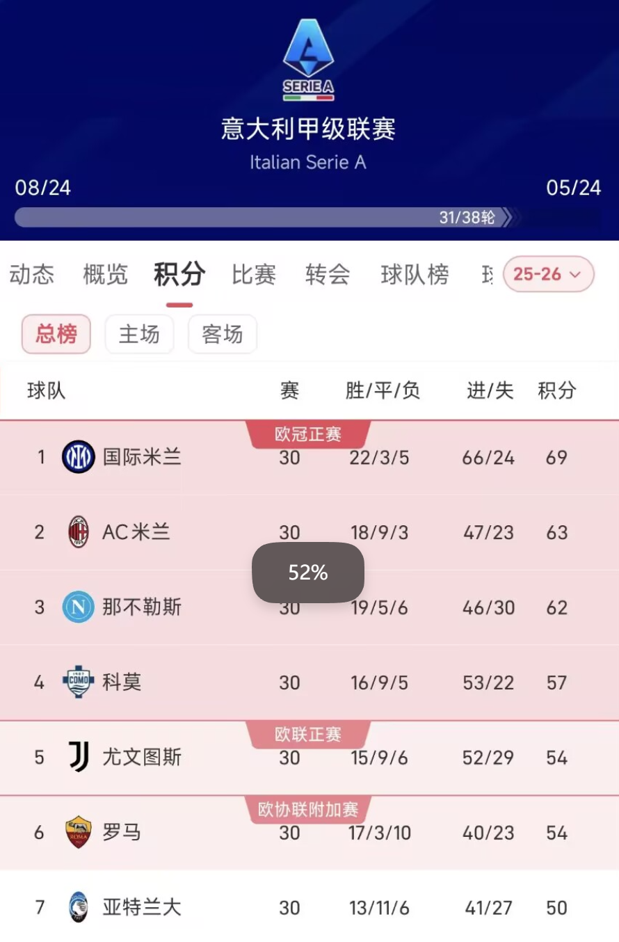 意甲只剩最后8轮。国米仍在积分榜领跑,但过去3轮不胜的蓝黑军,领先优势从10分缩水为6分,争冠的压力正在逐渐变大。罗马队本轮前以54分暂居第6,落后第四名3分。此战关乎争冠与争四,两队战意都毋庸置疑。