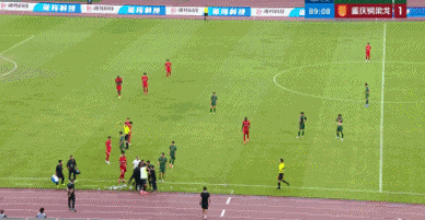 随后在比赛上半场最后时刻,阮奇龙又被米特里策踢倒,场边铜梁龙助教杜宇抗议,被主裁判张晓晨出示红牌罚出场。