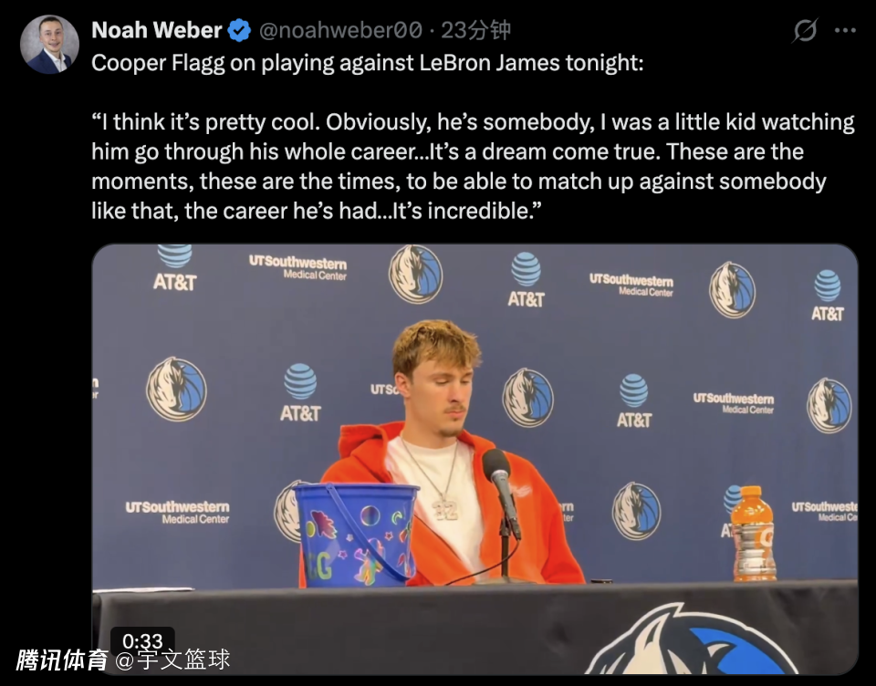 弗拉格在采访中也谈到和詹姆斯交手,他表示:“我觉得这太酷了。他当然是个了不起的人物,我从小就看着他一路走来,见证了他的整个职业生涯,这简直是梦想成真。能和这样的人同场竞技,和他那样的职业生涯相比,真是太不可思议了。”