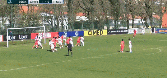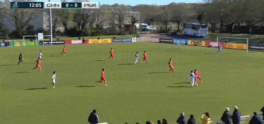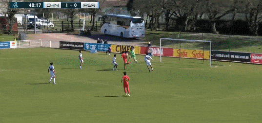 第35分钟,盛宸熙左路弧顶脚后跟送妙传,但柯博文单刀抽射。被秘鲁门将古斯曼神勇扑出。
