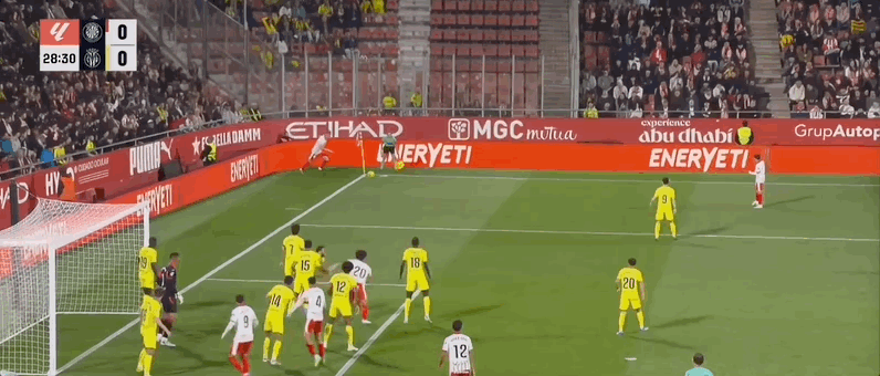 45+1’纳瓦罗自摆乌龙,赫罗纳1-0比利亚雷亚尔