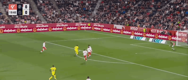 44’奥纳希起脚远射,皮球遭封堵后出底线