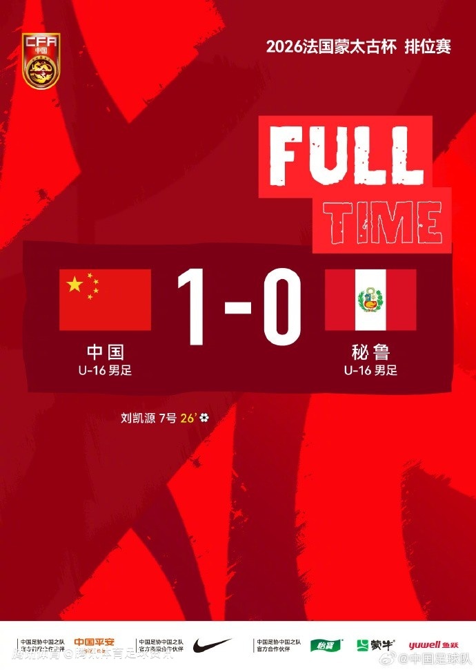 第七名:中国U16男足(1-0秘鲁U16),进球来自刘凯源