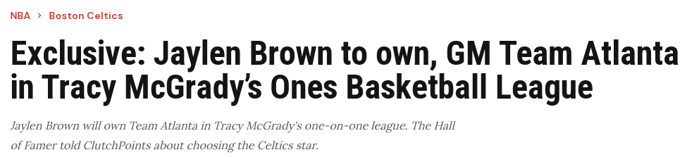 “布朗在波士顿显然是球星,但他清楚亚特兰大的独特魅力。而且他能在征战季后赛的同时,兼顾挑选OBL球队阵容的工作,” 麦迪说道,“两者不会冲突,反而会相辅相成,再次证明他是一位多么出色的领袖。”