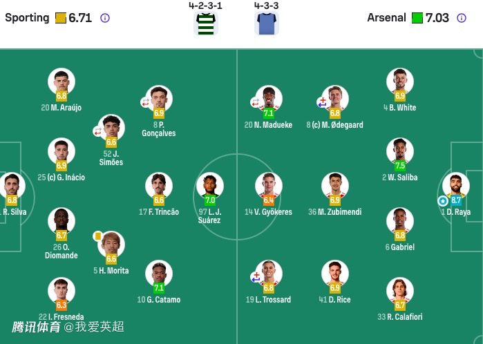 阿森纳首发:1-拉亚、4-本-怀特、2-萨利巴、6-加布里埃尔、33-卡拉菲奥里、8-厄德高(70'29-哈弗茨)、36-苏比门迪、41-赖斯、20-马杜埃凯(76'11-马丁内利)、14-哲凯赖什、19-特罗萨德(76'56-道曼)